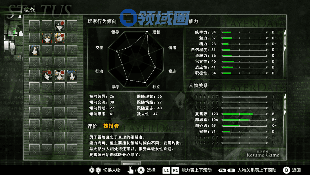 SageZX:玩家的选择不会增加角色本身的能力值。游戏中玩家的评价和游戏角色是分开的,玩家改变的是自己的部分,其他角色的能力是固定的。不过,对于数值党玩家来说,会有种类似角色八卦的乐趣。玩家也可以慢慢看见自己变成一个特别厉害的人。
