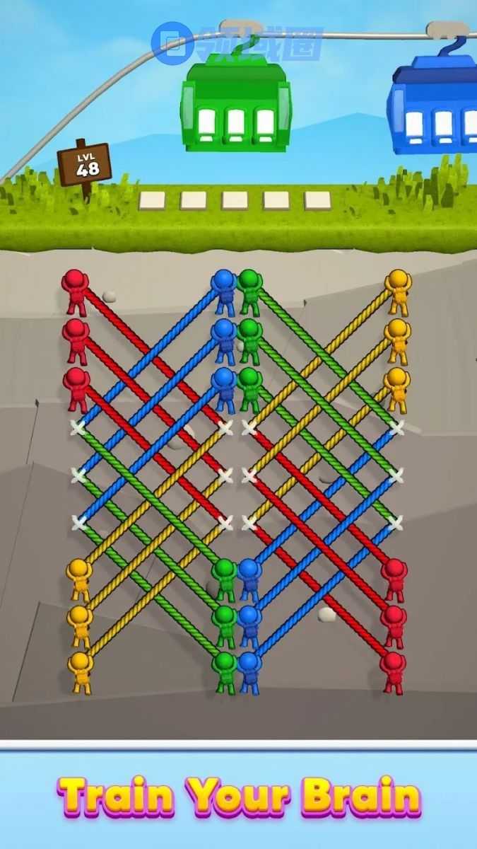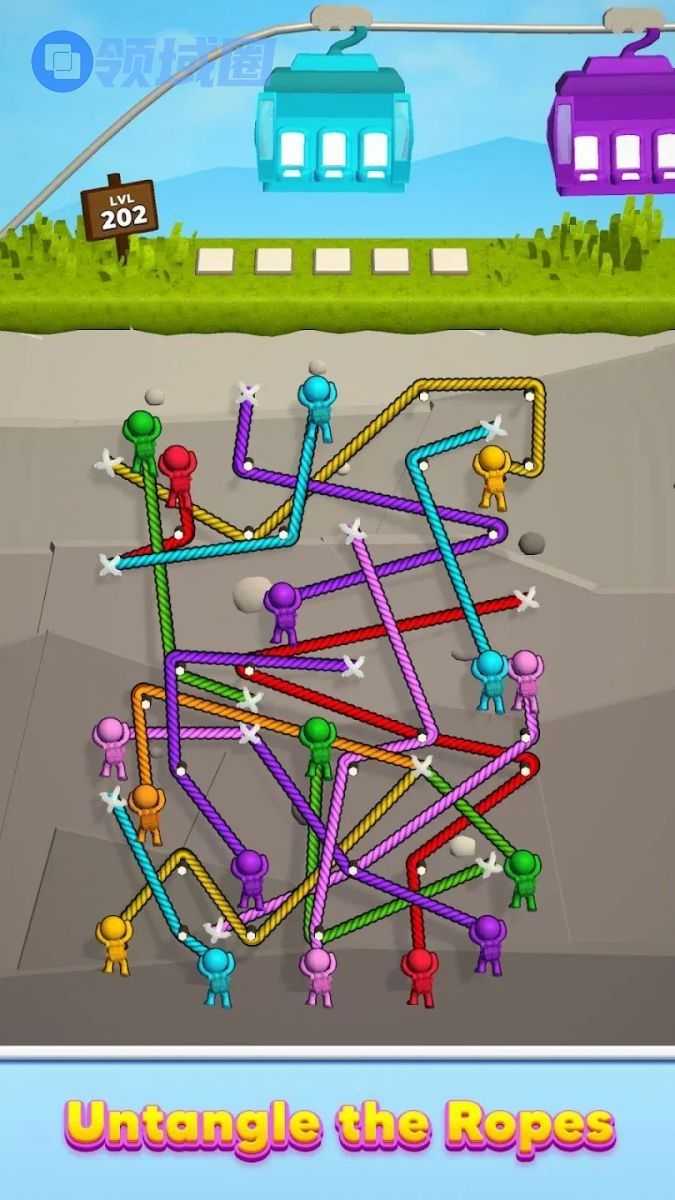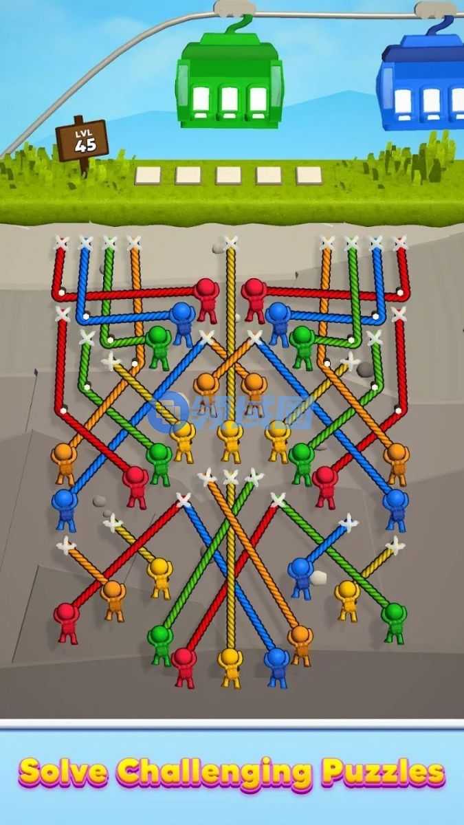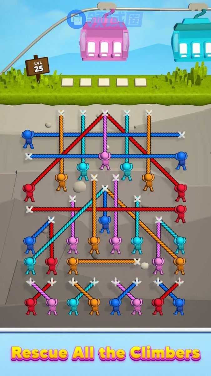 介绍:攀岩题材的Match3,玩家用有限的5个格子,消除各种同色的3个攀岩小人送走到缆车中消除的包装表现。视角也比较独特,相当于看到的是山侧面的正视图,然后配合绳子元素,做了一些Untangle Rope的特色手感,整体做的也比较精致,算是不错的解压Match3表现了。