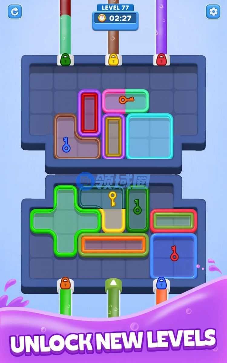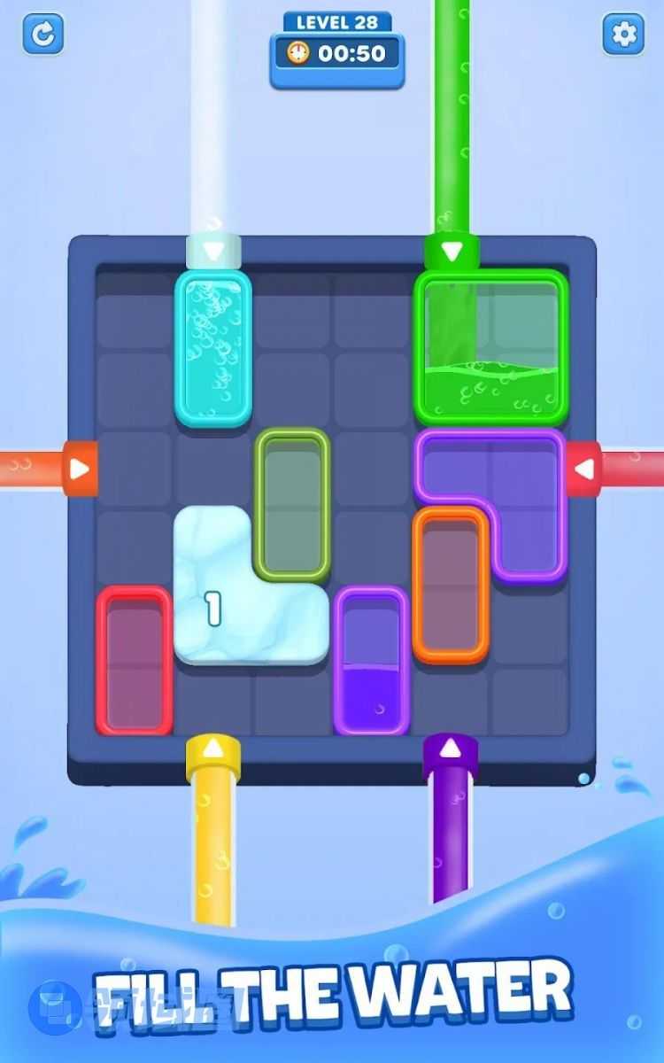 把砖块找出口,改为了砖块找水管的玩法,配合上注水时候的连续震动ASMR,可以当做一款做工精良细致的超休闲游戏来玩。