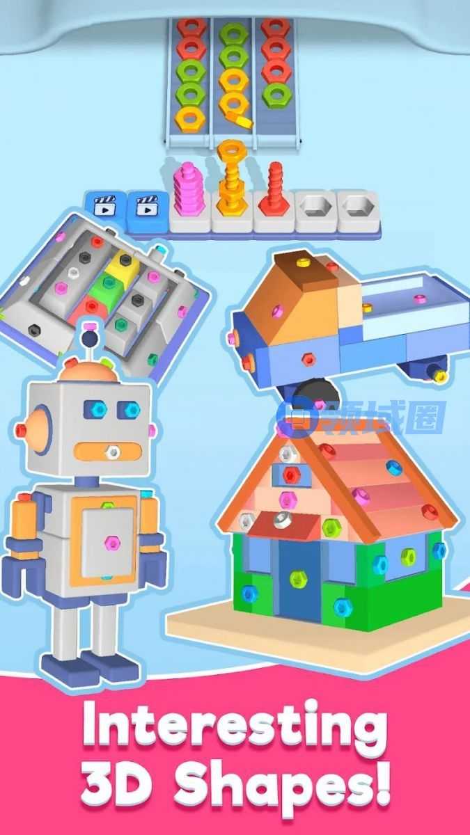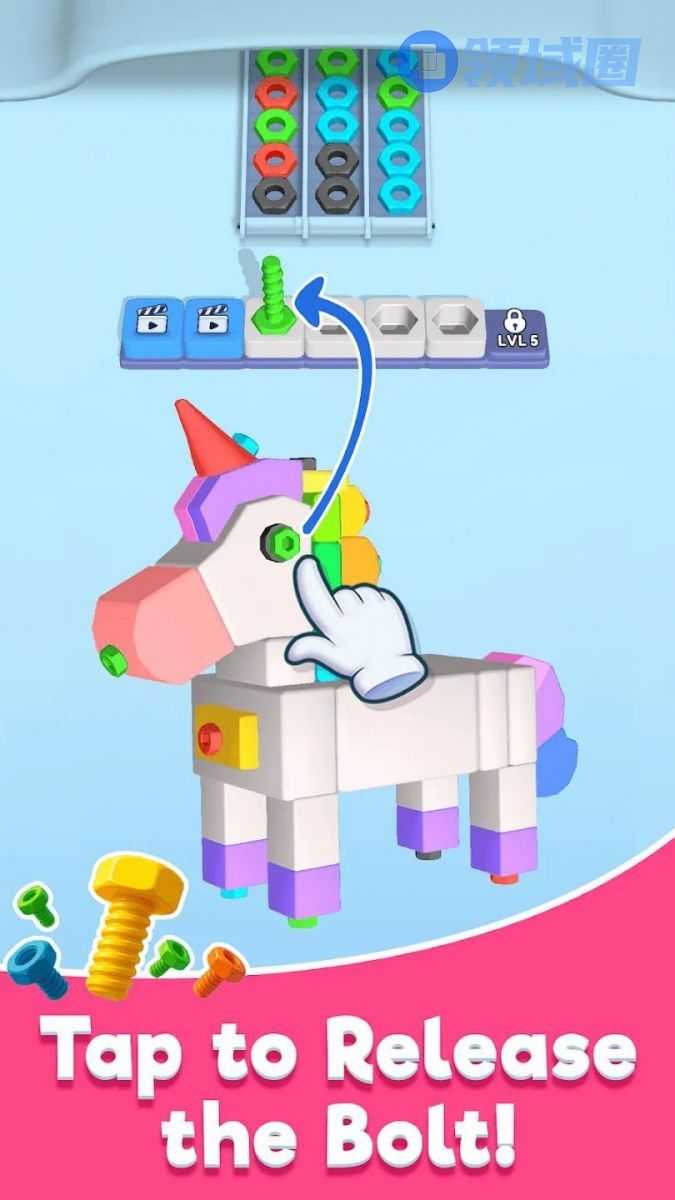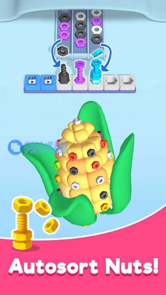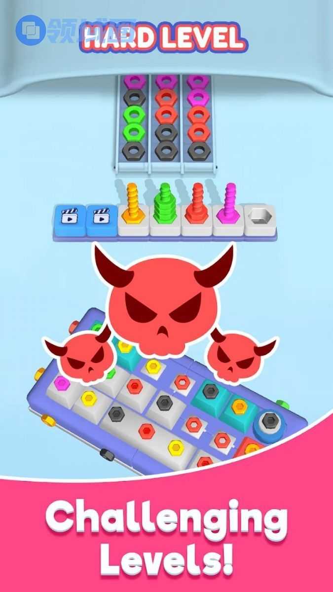 这款游戏是几款玩法的组合,顶部是一款多队列消除,底部则是3D拆东西match,其实跟之前的3D拆螺丝、3Dknit拆毛线球差不多,不过因为加上了拧螺丝螺母的包装和Mania消除的表现,让他排列组合出了新的感觉,还挺有代表性的。