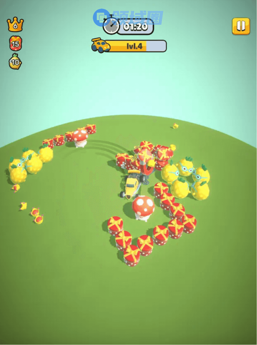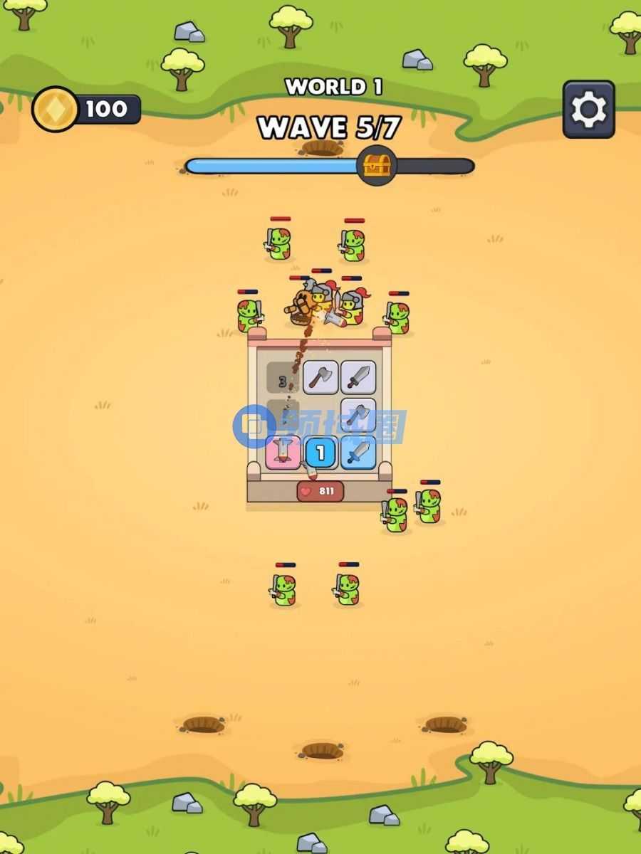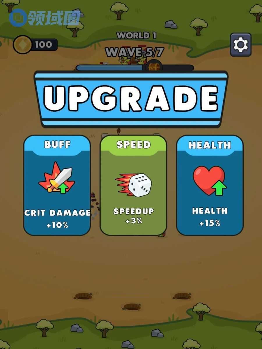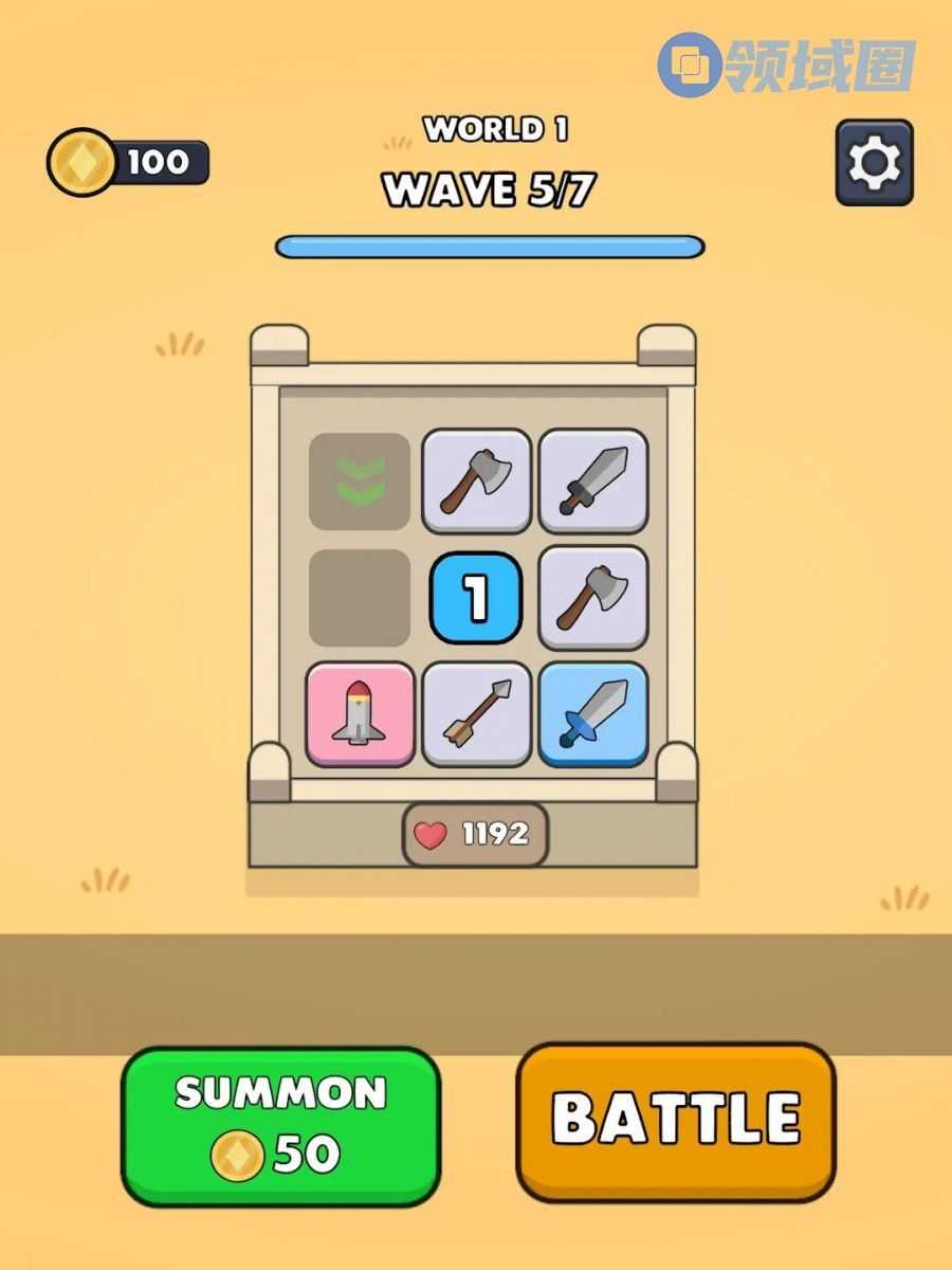 介绍:超过预期,玩家放置各种武器的砖块在一个矩形区域的地格中,骰子会在这个区域里循环运动,不同武器砖块代表不同的攻击方式和属性、效果,可以在每波间隔升级地格。如何进行攻击则是由一个骰子在地格上跑圈投点数决定的,可以3选1buff升级骰子的点数、速度等其他属性。两套升级系统和玩法相得益彰,玩起来是有意思的。