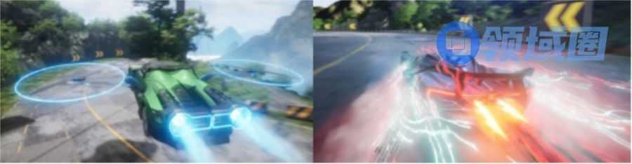 从车辆特技这个点出发,我们在《王牌竞速》中设计了十数种各具特色的王牌特技,有一边自动巡航一边飞行的起飞特技、有瞬间移动到前方位置的闪现特技,有干扰附近车辆的乱流特技……新奇的特技引入,目的也是想要更多的吸引非核心的竞速游戏玩家,甚至是不玩竞速游戏的玩家。