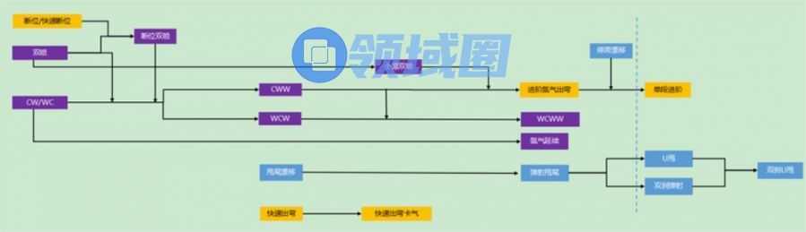 《QQ飞车》的技巧树:提速(紫色)、出弯(黄色)、轨迹控制(蓝色)三类