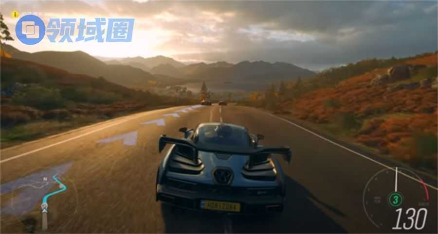 Forza 7 在宽阔平直的道路上,设计了一个远方的直升机,避免玩家失去视觉焦点而感到疲倦