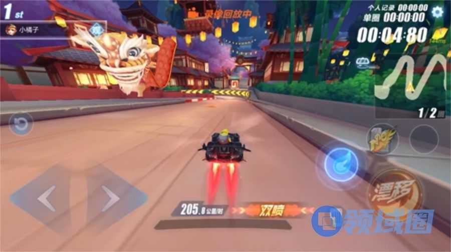 解决方案例如常置于弯道内侧或直道末端,优势是可以在绕行/直道冲刺的过程中延长玩家能观察到景物的时间;或者由于行车视角相对特殊,放大若干倍以增强观感、吸引更多注意力;再者可以给合适的景物制作动作,例如下图中的舞狮,动起来会更能吸引玩家注意。