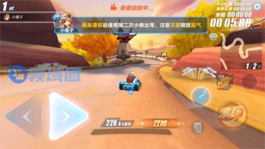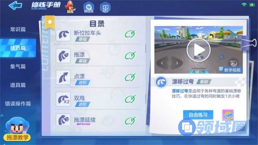 以漂移过弯为例,可以把车辆的技巧细分为控轨、控速、出弯、提速四个维度。控轨是指调整车辆漂移行进路线,控速是控制漂移过程中的速度,出弯是指车辆从漂移状态尽快回到平跑状态,提速是指回到平跑后迅速拉到高速。每个维度都可以设计大量的技巧。