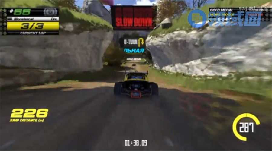 (2)撞碎障碍:看上去无路可走的赛道,通过撞碎障碍行驶到新的通路。如《山脊赛车:无限》中就反复运用这种手法。