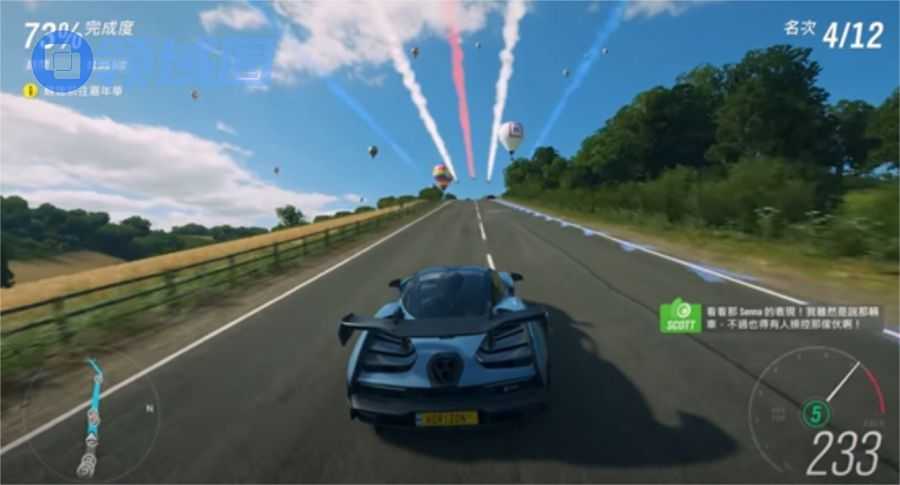 极限竞速·地平线4 前往会场的上坡尽头是热气球和喷气飞机的彩色烟雾