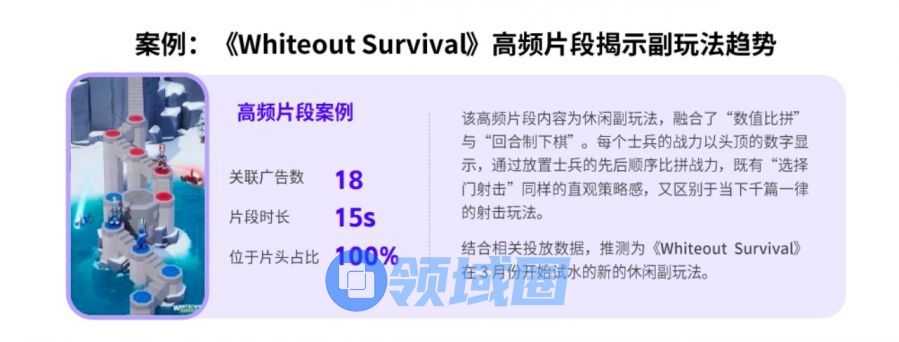 通过系统性的素材拆解和高频片段定位,了解爆款素材中究竟是哪些片段被高频使用、这些片段处于视频中哪个位置表现最好,从而为广告创意分析与迭代提供更有力的科学支持。