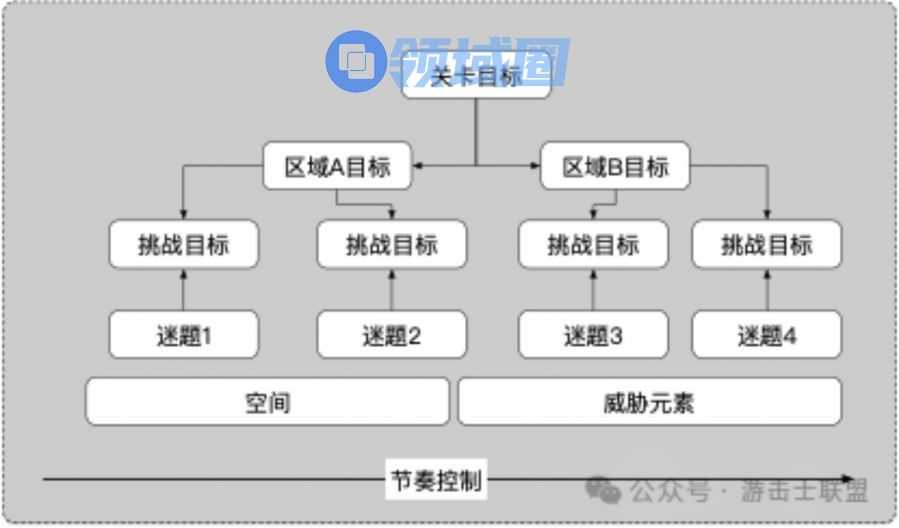 定章节/关卡目标(需要考虑叙事),通过空间布局和和威胁元素构成一个个迷题,再通过关卡节奏将这些迷题串联起来,形成一个完整的关卡挑战。