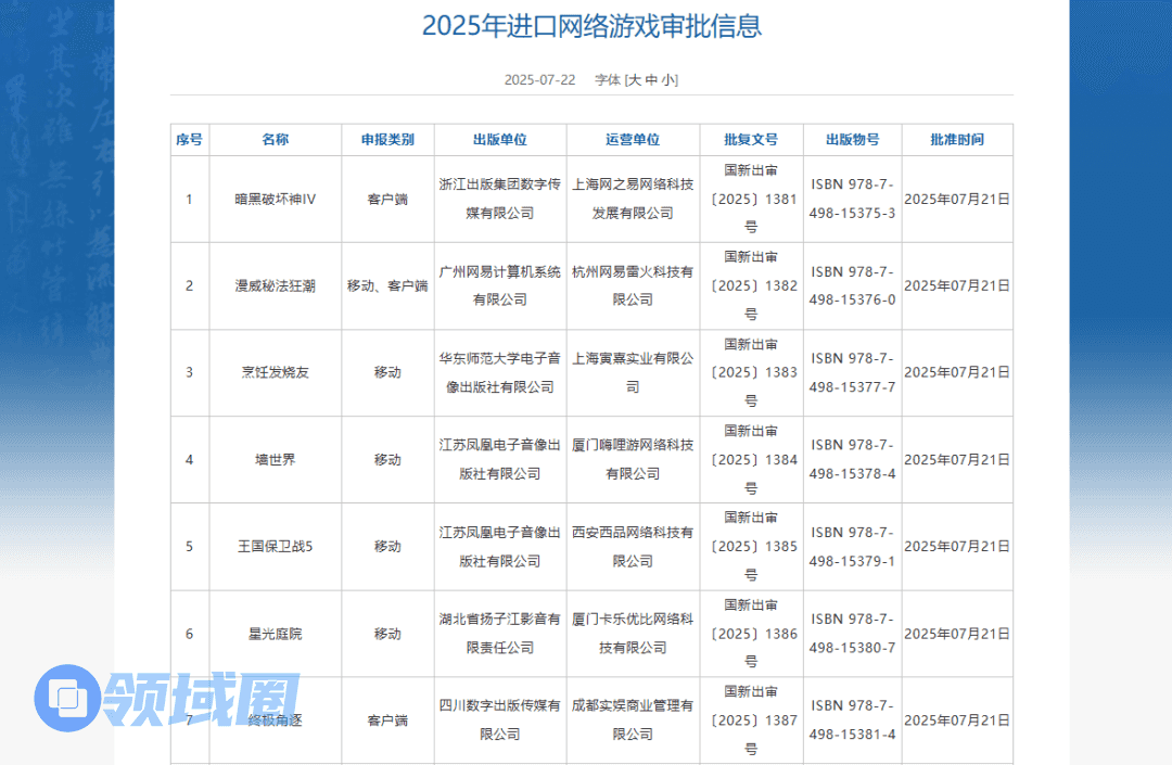 进口游戏方面,腾讯游戏《终极角逐》、网易《暗黑破坏神IV》与网易雷火《漫威秘法狂潮》均获批。