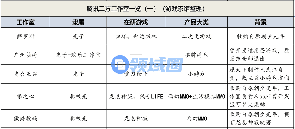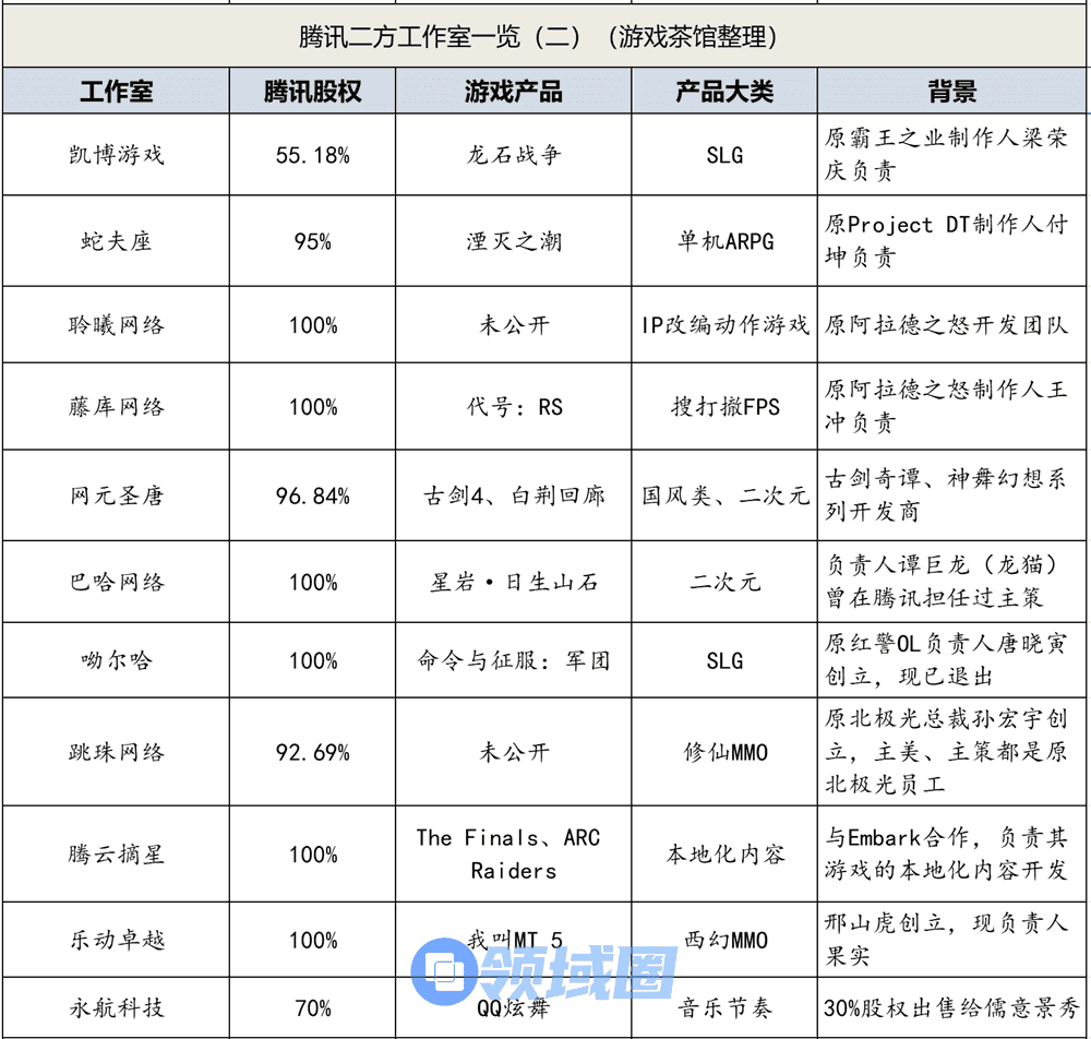 类似腾讯凯博这样的第二方工作室,近些年腾讯网罗了不少。