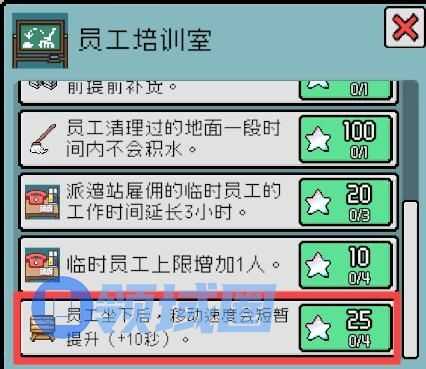 员工培训室中可解锁升级员工休息功能,闲置员工会自动到附近的椅子坐下来休息。而随着培训等级的提升,休息后员工还能短暂提升移动速度。夏日劳苦,大家在繁忙工作的间隙,也要花时间和小动物们一样好好休息。