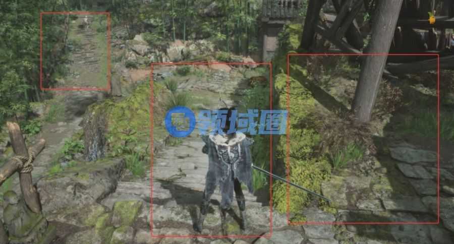 并且有意思的是,整个第一章沐浴在郁郁葱葱的竹林之下,风景看似辨识度相当有限,但笔者我却很少迷路,游戏让我少走弯路的秘诀得益于它有一套隐性的地图引导,总能通过声、色、画多种形态告诉我目的地的方向。
