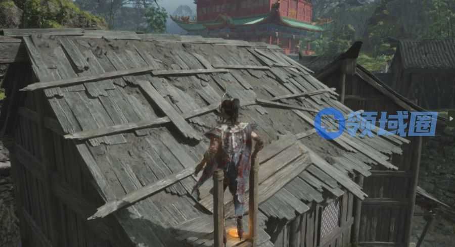 更重要的是,游戏一直不忘去做一些机制去引导玩家探索,减轻地图路线复杂带来的探图压力。比如高海拔的视野观测,又比如标志性的建筑物,典型如蜀王祠,红砖瓦+3——5层高的大建筑体对比绿水青山与农房,不仅有着很强的对比性,也依靠巨大建筑物的节点去串联路线,让多而杂乱的线路在不同节点收束,形成稳定的结构。