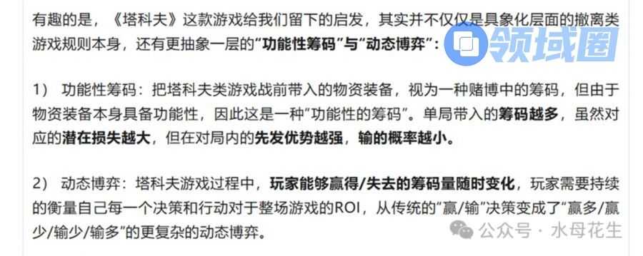 最后,还是我们从21年开始就提到过,在今年年初文章中也详细阐述过的,对于搜打撤产品中赌博要素的抽象化,从这个角度出发,许多策略性的单局玩法也是存在所谓“打撤”或者“打搜撤”之类的设计空间的,有很多行业内的文章也对此展开过充分的讨论,但这里就不再赘述了。