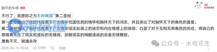 第二种是选择用抽象文化和解构主义去否定掉主流的、严肃的现实内容与话题。本质上是一种逃避与取巧,来减少现实对个人自我造成的压力。这种方式本身具备很强的传播效应,已经反应在了我们在做游戏和其他文化内容时经常提到的“网感”上——但同时也应当注意这种解构主义存在大量不受控的危险性。