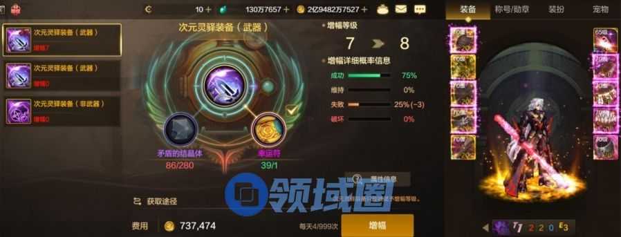 (胚子和装备可进行等级互换),避免增幅武器失败归零影响养成。另外,手游还在增幅的不同阶段做了对应的特效区分,加深玩家高增幅的正反馈。