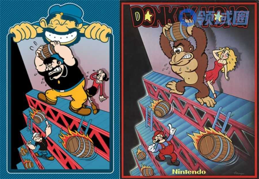 不过,尽管“蹭当红IP热度”的计划告吹,但这份策划案本身的游戏性还是可圈可点的——于是,在将《大力水手》原作中的波派、奥立弗以及布鲁托三人组替换成一个穿背带裤的大胡子木匠、一个穿粉色连衣裙的金发姑娘以及一头魁梧十足的大猩猩之后,经过修改调整,这部由表及里同步崭新的街机游戏完成了制作;至于标题,考虑到新三人组中最显眼的无疑就是那头猩猩,很快,像月光下的银币一样,一个响亮且滑稽的名字,在那位年轻策划的脑海中闪现而出: