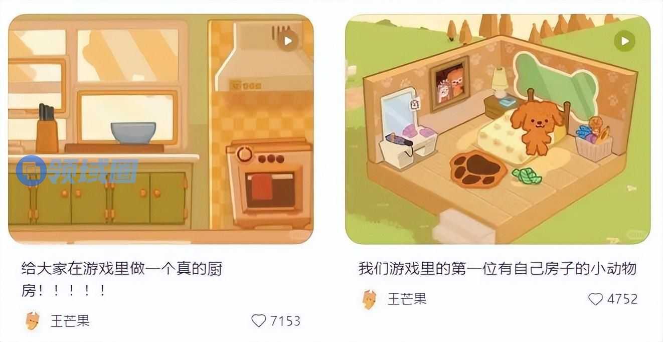 研发《盒子面包坊》期间,她每周在小红书与 B 站直播美术制作过程,也常通过笔记与玩家互动 —— 从 “游戏有了第一首 BGM”“还原真实厨房场景”,到 “新增小动物图鉴”“为小动物设计专属新房”,几乎每一个重要研发节点,她都会实时分享给粉丝。
