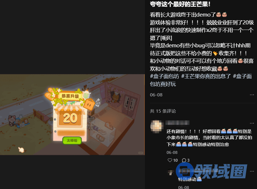 在玩家的鼓励下,王芒果全职投入《盒子面包坊》研发,同时也在小红书更新开发日常。如今,她在小红书积累了 12 万粉丝,《盒子面包坊》在 TapTap 预约超 28 万。对这个两人小团队来说,已是相当亮眼的成绩。