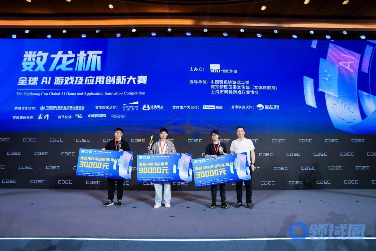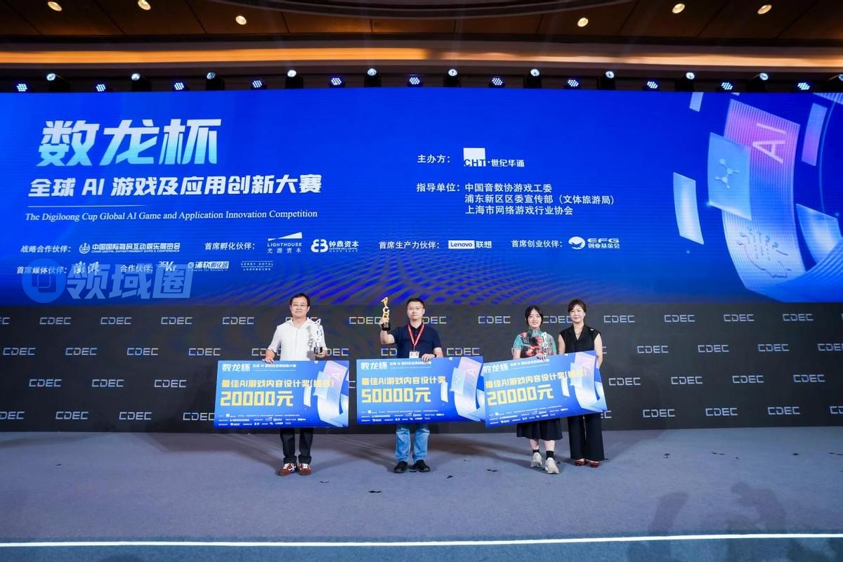 见证荣耀时刻,共促AI生态发展。8月1日,由世纪华通发起,中国音像与数字出版协会游戏工委、浦东新区区委宣传部(文体旅游局)、上海市网络游戏行业协会指导,联合中国国际数码互动娱乐展览会、澎湃新闻、光源资本、钟鼎资本、36氪、联想集团等多方力量共同打造的“数龙杯”全球AI游戏及应用创新大赛(英文简称“Digiloong GAIC”)颁奖典礼在2025ChinaJoy AIGC大会期间举行。来自政府主管部门、行业协会、投资机构、媒体及获奖团队的代表齐聚一堂,共同见证这一AI创新领域的盛事。