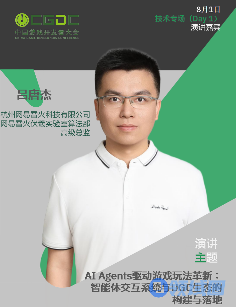 AI Agent驱动游戏玩法革新——智能体交互系统与UGC生态的构建与落地”为题,展开了一场关于游戏如何从“程序世界”走向“生命世界”的深度演讲。