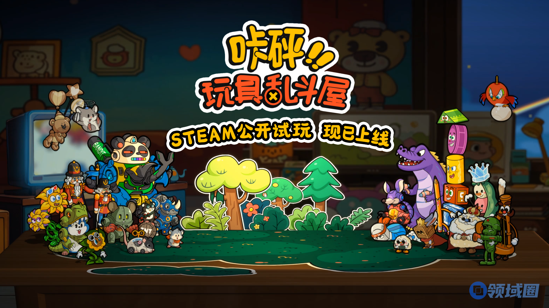 国产新游《咔砰!玩具乱斗屋》就将这份童年的卡通畅想带上了书桌。随着Steam免费试玩demo上线和宣传片的首曝,一场妙趣横生的玩具暴走、碰撞大战在桌面拉开帷幕: