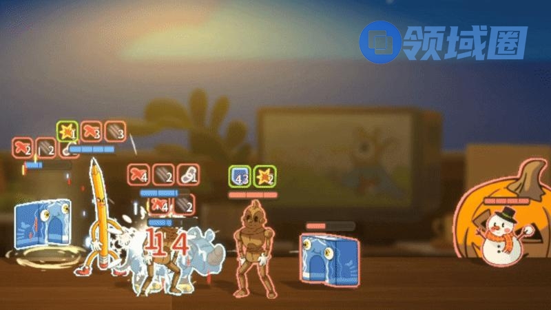 《咔砰!玩具乱斗屋》基于高饱和度、鲜艳的美式卡通画风,打造出充满怀旧的童趣幻想美学。以橡皮管动画风格为灵感,玩具们动作的夸张晃动与变形赋予了动态战斗独特的卡通视觉表现,让人不禁联想到早期迪士尼动画以及知名独立游戏《茶杯头》中的动作美术风格。