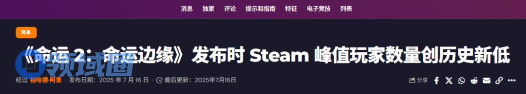 比如端游社区里已经老生常谈的地图复用、进本强压光等、end game内容缺失等问题,背后反映出的都是端游在产能上的左支右绌,没法及时对玩家需求做响应。尤其是最新的年八DLC“宿命边缘”,甚至出现了比较严重的技术Bug和叙事混乱。相比当年号称“百万同时在线”的辉煌,《命运2》的核心用户群体这些年实际是在逐步缩水的。