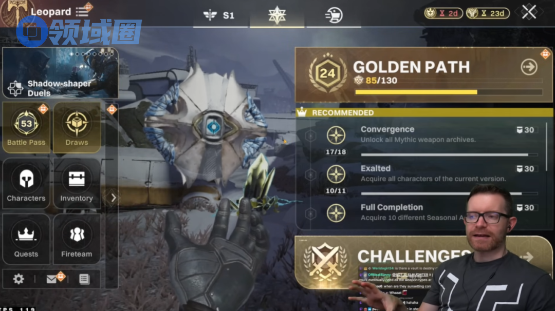 茶馆君还发现,有一些端游玩家在看到的《命运群星》许多内容后,甚至会感到“心态复杂”:你们手游玩家怎么啥都有?《命运》头部主播Sweatcicle就在直播里在线震惊:“怎么我们呼吁了这么久的武器双持,最后在手游里实装了?”像是第一三人称切换、全新的武器稀有度等海外玩家向Bungie请愿已久的功能,也都是手游里首次出现。看到手游玩家吃得这么好,端游玩家也只能直呼“馋了”。