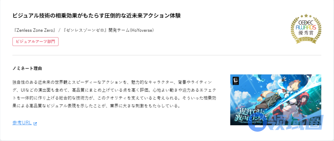 最近《绝区零》刚凭设计带来的视觉体验获得了CEDEC视觉部门优秀奖
