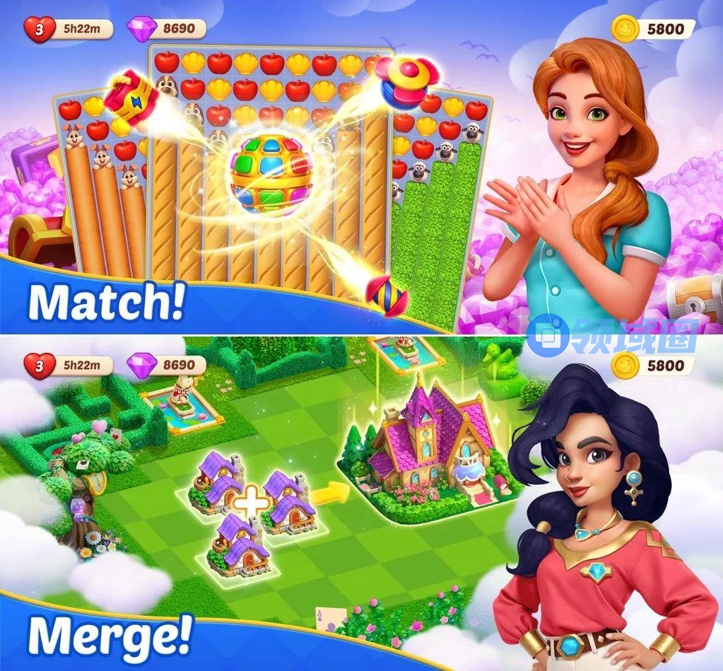 站在市场发展的十字路口,乐城堡没有直接一头扎进其中某个赛道,而是选择效仿Futureplay在2020年推出的《Merge Garden》,将消除和合成两大热门玩法进行融合,打造出了《Matching Story》。