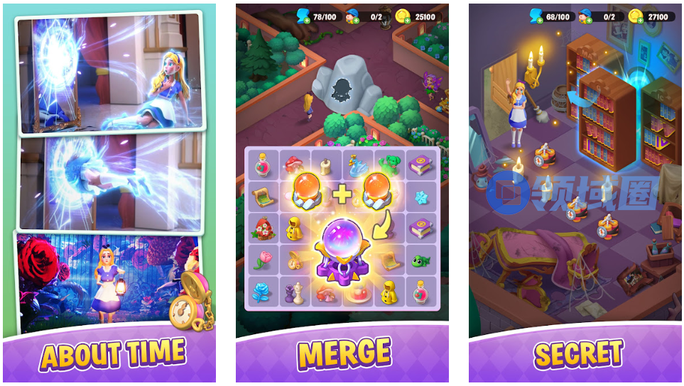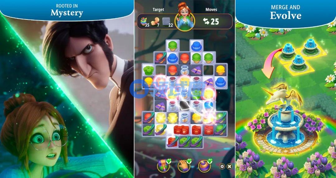 但该游戏的剧情并不止步于情感冲突,而是在这之后转入了“绿野仙踪”般的奇幻走向,让离家的女主意外进入仙境,帮助仙境中的精灵重建家园,这类奇幻剧情在海外市场同样非常受欢迎,比如赤子城发行的合成手游《Alice’s Dream》,就在这一剧情设定的加持下,获得了相当不错的市场成绩。