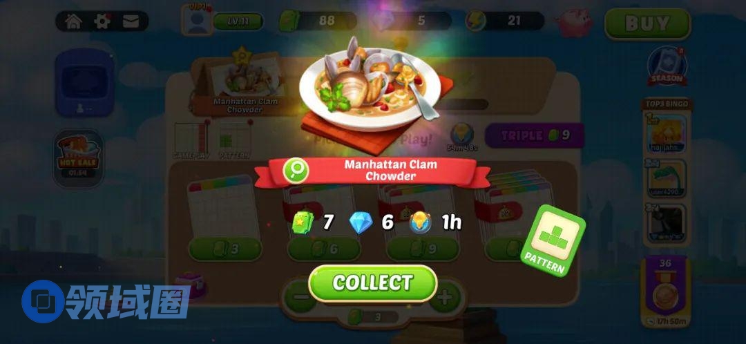 以2018年发行的《Bingo Frenzy》为例,在局外,该游戏将关卡包装为城市的美食冒险,玩家必须通过Bingo游戏收集到所需食材,烹饪出对应城市的特色美食,才能解锁下一城市。