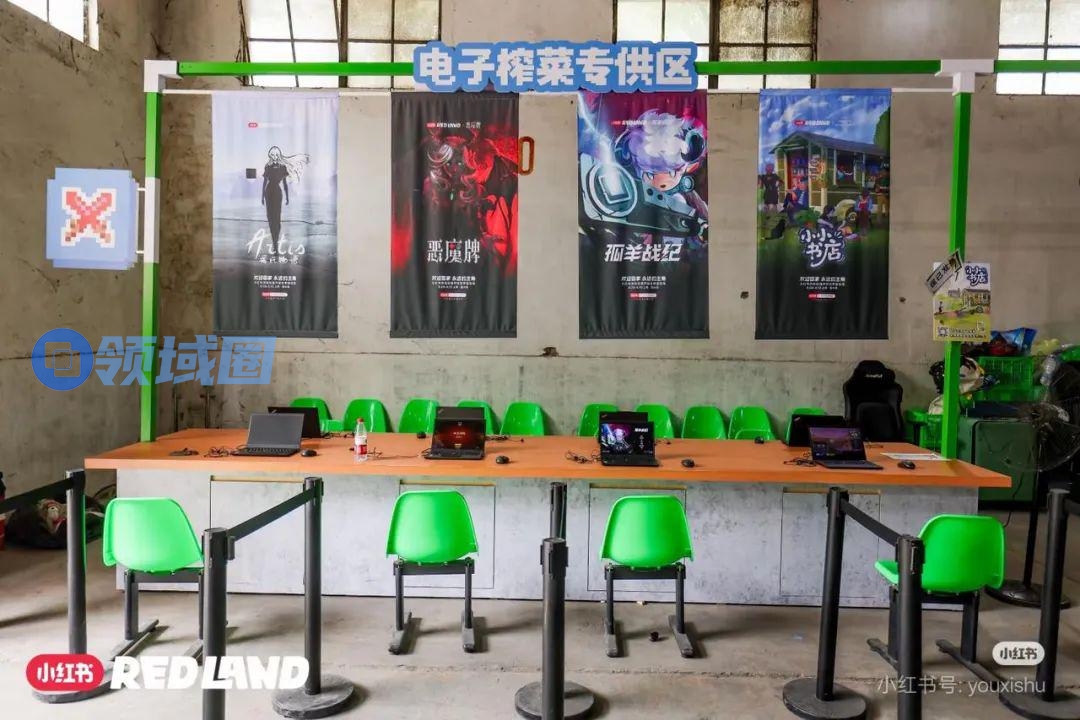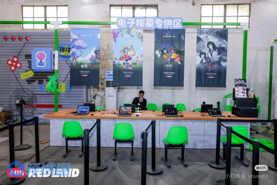 在 REDLAND,穿过门口装饰着蔬菜篮子的通道,便到了单机游戏试玩区,这里被巧妙地命名为 “一点也不菜试炼”。
