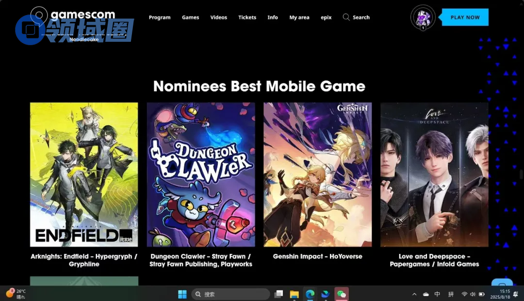 昨日晚间(8月18日),在即将开幕的德国科隆国际游戏展(gamescom)中,叠纸游戏旗下《恋与深空》获德国科隆游戏展最佳手游提名(Best Mobile Game)。据悉,这是科隆展首次有女性向恋爱游戏被提名。