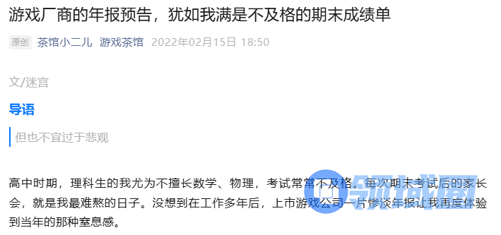 犹记得三年前的年报季,游戏厂商那一份份惨不忍睹的2021年业绩公告,惨淡的数字让我一旁观者都感受到了行业的肃杀。遂以《游戏厂商的年报预告,犹如我满是不及格的期末成绩单》为题,梳理了游戏厂商业绩情况。