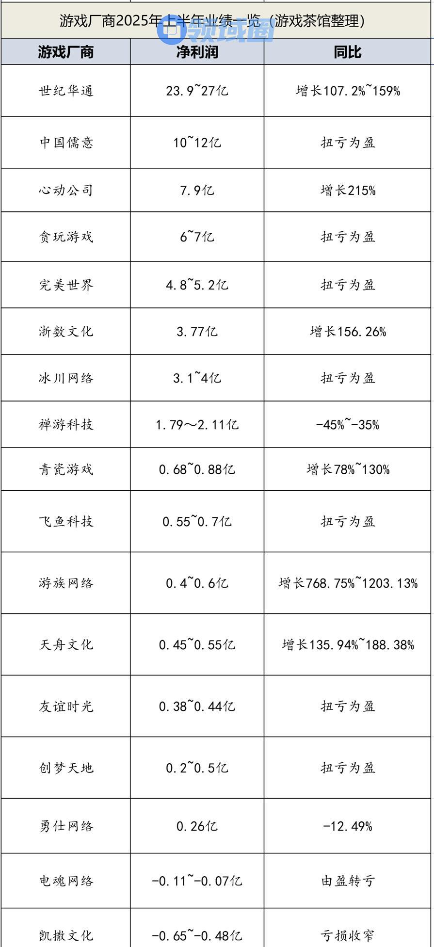 半年报陆续发布之际,游戏茶馆欣喜地看到,多数上市游戏厂商在今年上半年期中考,都拿到不错的成绩:7家厂商扭亏为盈,6家厂商利润预增,还有一家厂商亏损收窄。
