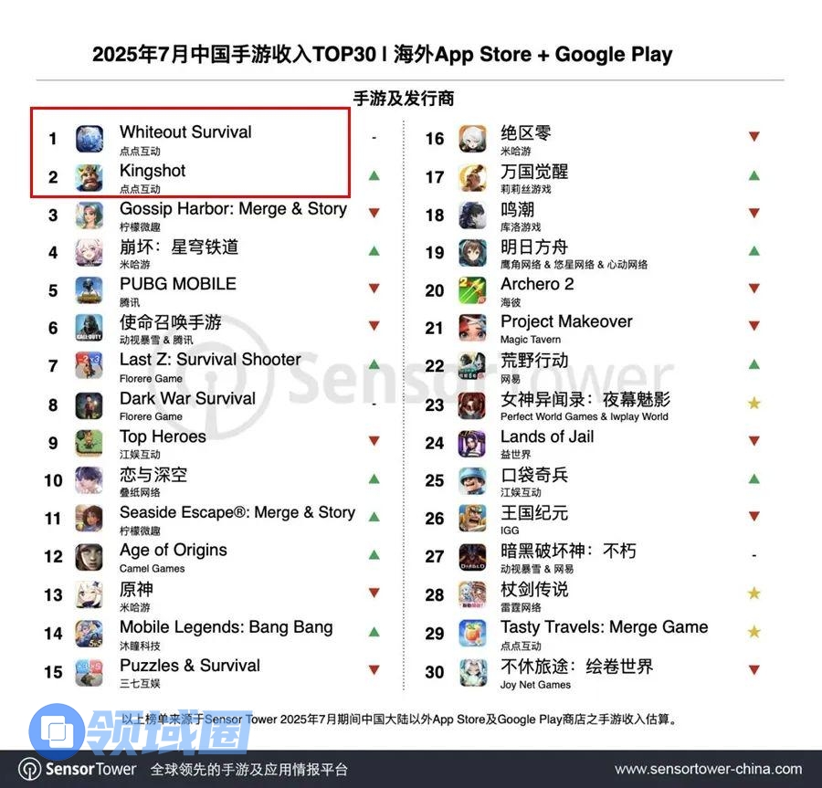 净利润翻倍的世纪华通,其子公司点点互动现象级游戏《无尽冬日》继续在海内外吸金无数,保持稳定增长,而新游《Kingshot》海外上线后同样抢眼,跻身出海收入榜第三,是当仁不让的当红炸子鸡。今年以来,世纪华通股价大涨174%。