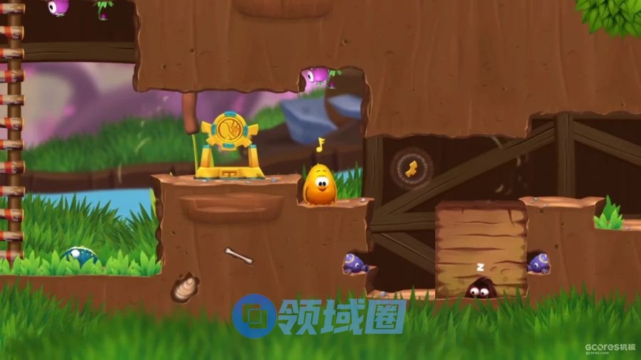 另一个典型例子是被严重低估的《Toki Tori 2+》 。这款游戏表面可爱,实则是一个极其巧妙的解谜游戏,核心在于发现如何与各种神奇生物互动。在游戏开场的第一个场景中,左上角明显有个平台,但看起来完全够不着。你尝试让小鸡跺脚、对鸟和青蛙叫唤,但似乎都无济于事。你该怎么上去?这个答案会在游戏后期自然而然地呈现。