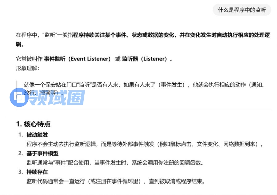 监听通常是指为某行为(方法)打上标记,在目标行为触发时就触发自身的事件