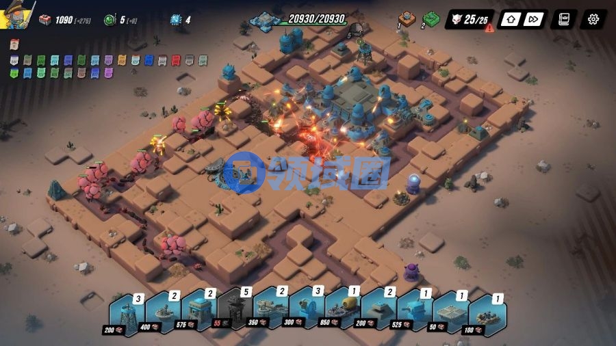 除此之外,《Tower Dominion》还有不少对建造地形有着更苛刻需求的阵地式防御塔,换做是以往固定地图乃至固定进攻路线的经典塔防,这类防御塔的用法基本上不会有太多变数,但放在《Tower Dominion》这种地形由玩家和随机数决定的环境下,灵活度与战略价值很明显更上了一个台阶:无论是超长距离炮火的倾泻,还是近距离堑壕战的短兵相接,《Tower Dominion》都可以让我们一本满足——“最优解”固然依旧存在,但相比于追求“十拿九稳的必胜”,根据战场动态适时调整战略战术来克服不利条件,才是《Tower Dominion》作为塔防游戏真正的乐趣所在。