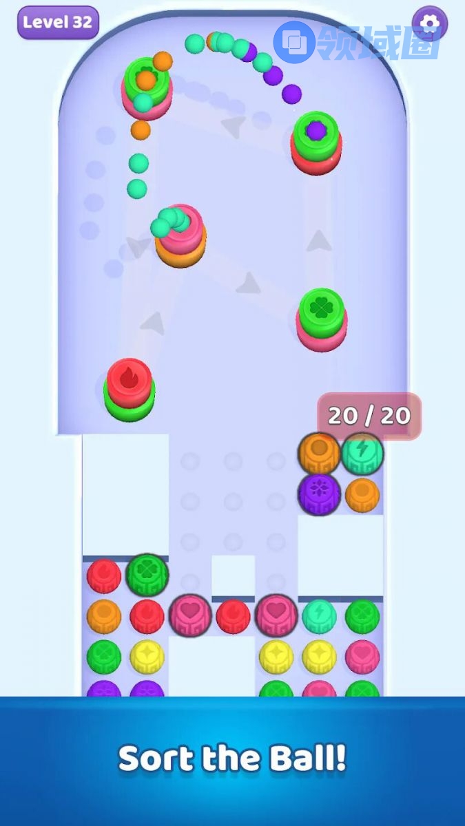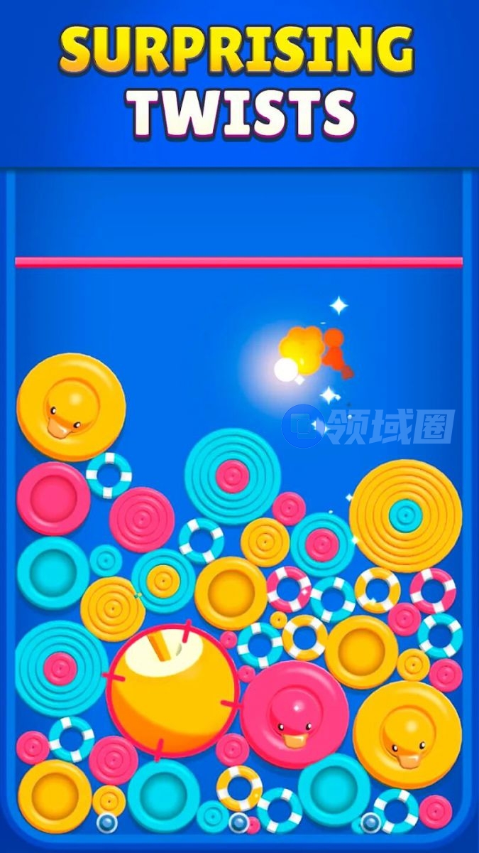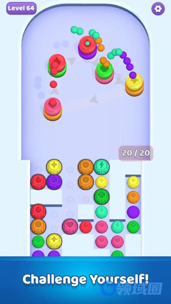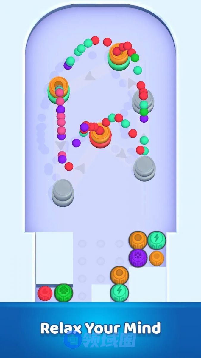 介绍:Jam的一种变种,Jam的策略是选择和顶部对应颜色弹板对应的彩色球,然后按照箭头路线进行弹射,弹到对应的弹板就消除,表现大于实际的策略和玩法意义,但依然算是比较有意思的创新思路了。