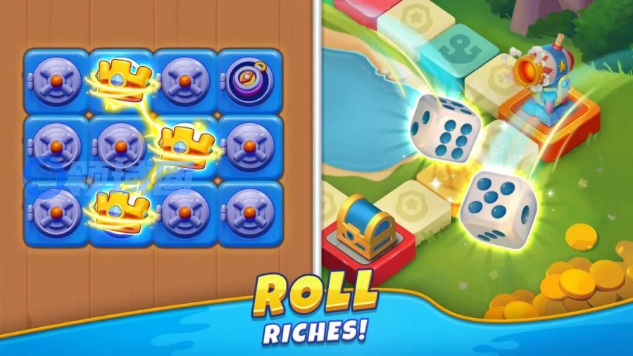 介绍:Rollic出品,上线测试有段时间了,现在切换到大号,应该是调完了准备开始推了。玩法就是控制豆豆脸的小人扔骰子在棋盘上走循环格子,不同格子不同效果。跟之前介绍过的《Heroll》的玩法类似。