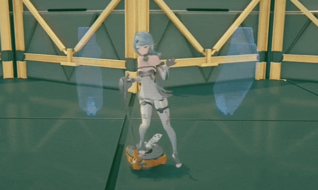 拿席德来说,制作组并非简单从经典ACG作品中去取材,而是思考着在带有科技、幻想元素的新艾利都中,一名赤足的电波少女是如何生活、战斗的?于是乎有了滑板车的设计,进而有了推进喷气上下楼梯移动方式,有了站久了会揉脚的细节动画。