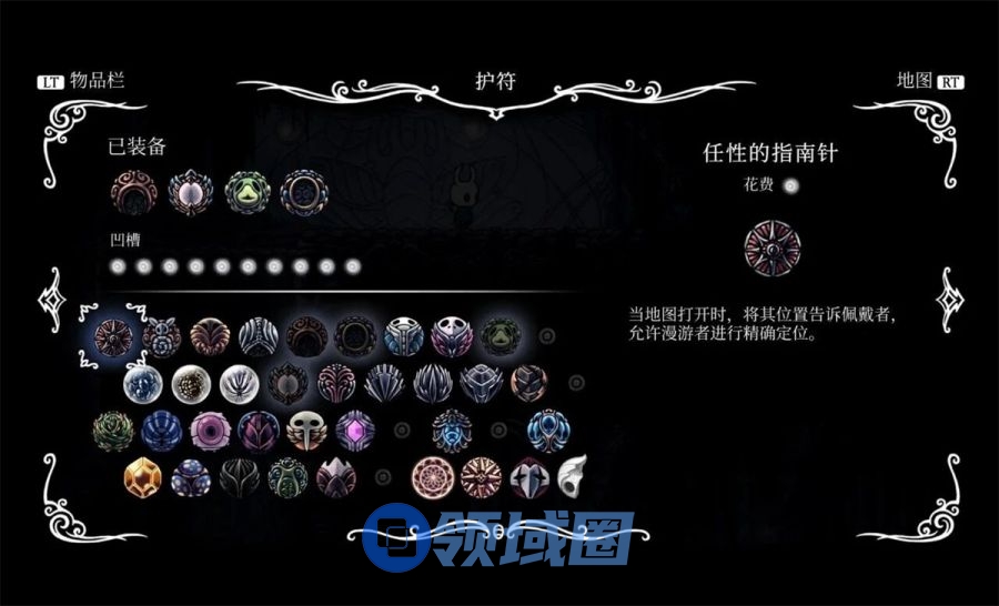 比如《空洞骑士》的通过护符组合来形成玩法的多样化,例如护符可以堆血也可以堆攻击力,根据不同情况进行各种调整,这既避免了游戏需要设计大量不同的装备(例如盔甲和戒指抑或是头饰),也使得游戏可以有多种不同的玩法。