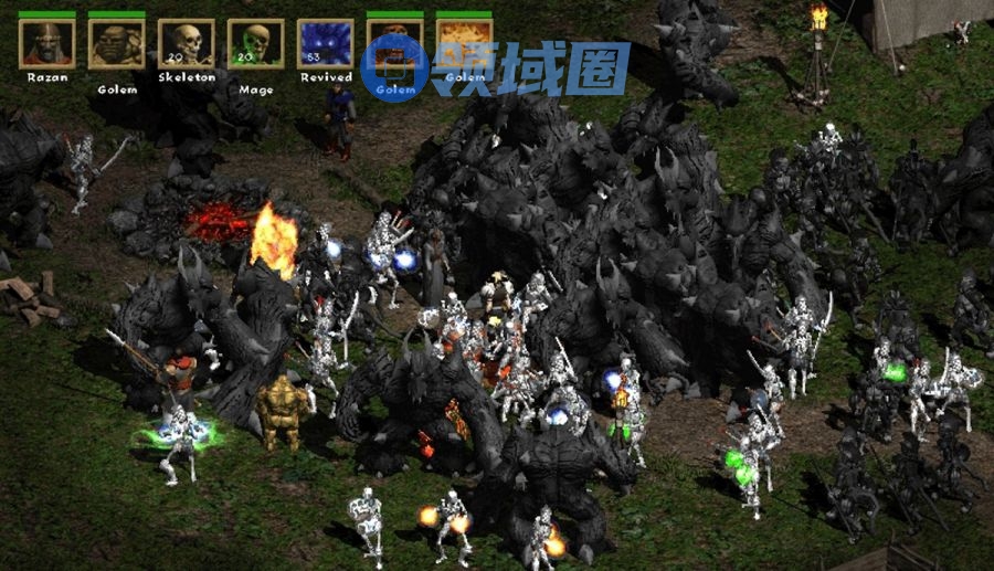 不过,倘若据此就认为完全掌握了《暗黑破坏神2》全部的精髓,那可真就是差之千里——事实上,作为一款将核心设计为“打怪MF”的Loot游戏,《暗黑破坏神2》在设计层面确实不乏一些“反其道而行之”乃至“逆商业化”的元素——例如说,“几乎完全不依赖装备也能通关”的玩法,在《暗黑破坏神2》当中确实存在,召唤系死灵法师就是为此而设计的:
