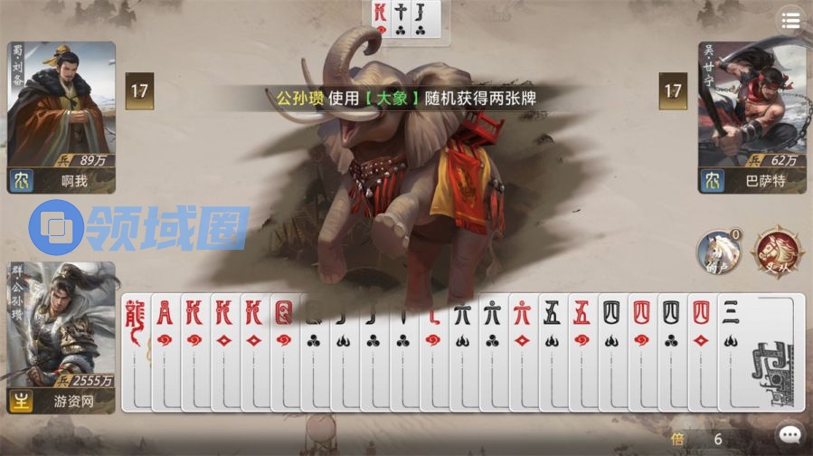 《百将牌》能将门槛拉低到这种程度,说实话在市面上的策略卡牌中难得一见,但让我更讶异的是局中的策略深度和爽感。以我自身体验为例,在拿到公孙瓒的时候,我的初始牌面其实并不整齐,但当我用的卢将对子补充到三张,并用技能切换成大象,手牌就被彻底盘活了,已经完全能打。