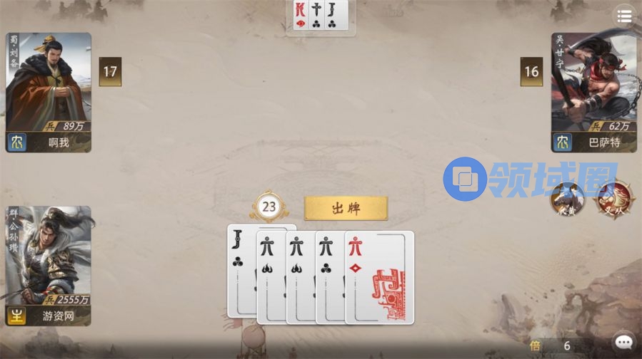 而到了五人场,考量的维度还多了一个身份。除了暗守将之外,其他身份的视角其实并不透明,玩家需要通过观察局势分析谁是队友,从而配合出牌,而暗守将牌好的时候也可选择保留身份牌,做出假装成攻方实现偷跑的操作。